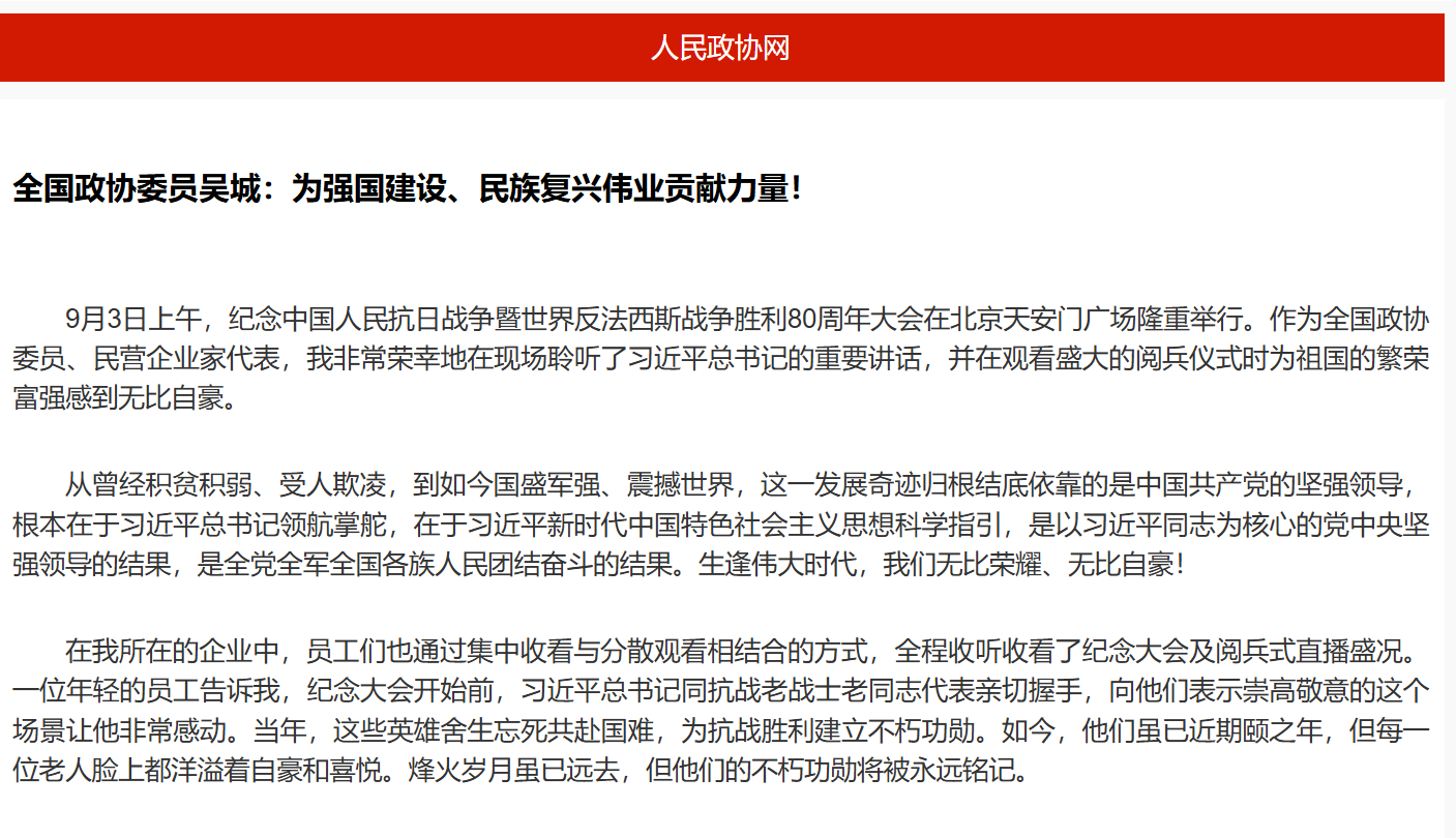 全國政協(xié)委員吳城:為強(qiáng)國建設(shè)、民族復(fù)興偉業(yè)貢獻(xiàn)力量!
